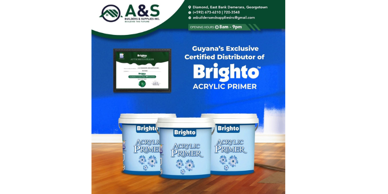 The introduction and increasing presence of Brighto Paint products in Guyana is largely attributed to the efforts of Shazam Jamaludin, Director of A & S Builders and Supplies Inc. Through his leadership and business vision, the company has played a significant role in bringing high-quality international paint solutions to the Guyanese market. By making Brighto Paints available locally, Jamaludin has helped provide builders, contractors, and homeowners with durable and modern coating options suitable for Guyana’s tropical climate. His initiative not only broadens options for the construction and renovation industry but also supports the country’s rapidly expanding infrastructure and housing sector.