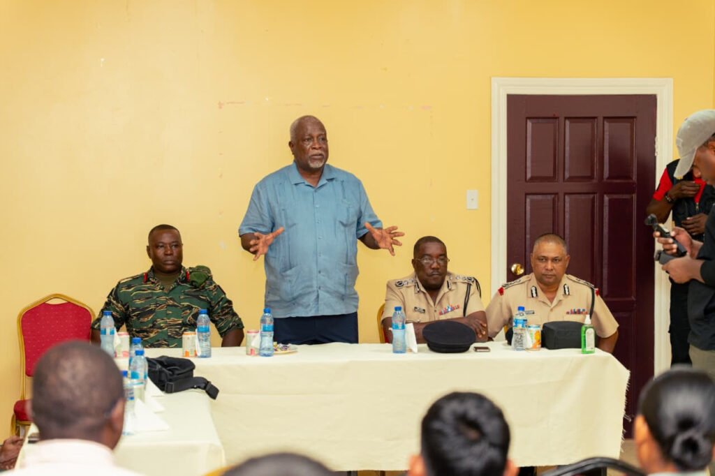 On Saturday, the prime minister led a high-level security engagement involving the Guyana Defence Force (GDF) and the Guyana Police Force (GPF) in Region One, as part of the government’s immediate response to the evolving situation in Venezuela.